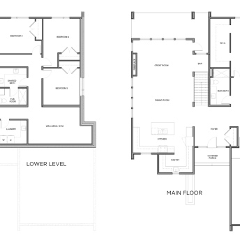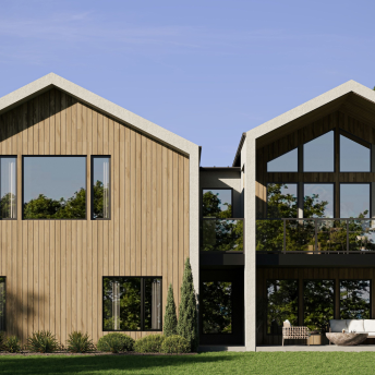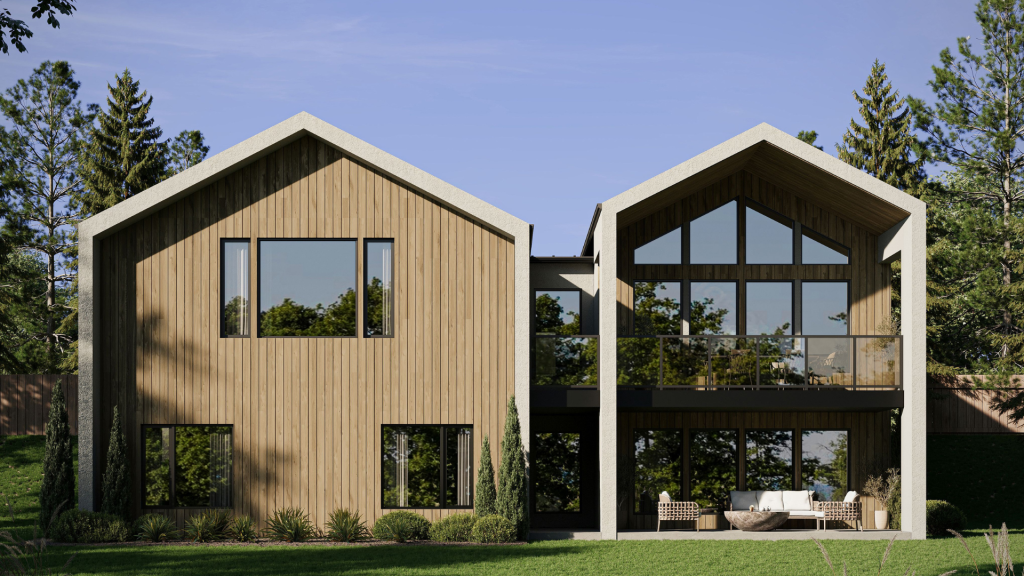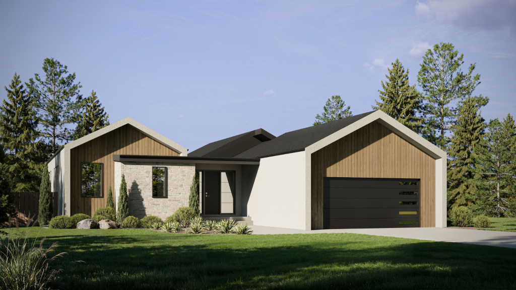 This Scandinavian showhome pairs clean white stucco with wood-loo vertical siding and striking black windows for a modern, natural exterior. The interior embraces minimalist living with a warm, welcoming touch, designed to promote wellness and harmony with the surrounding environment. Large windows invite nature indoors, illuminating the home’s white oak details, organic colour pallet, and airy vaulted ceilings. With hardwood flooring and sleek porcelain counters throughout, the space balances simplicity, comfort, and beautifully understated luxury.