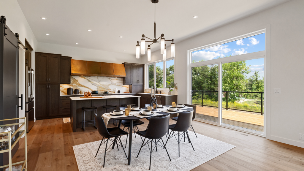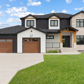 Step into this modern farmhouse show home, featuring 2875 Sq. Ft. of elegant living space. This home, nestled in the tranquil setting of the new development River Oaks North, combines sophistication with farmhouse allure—a perfect retreat for modern living. With 4 bedrooms and 3 1/2 baths, it seamlessly blends contemporary design with traditional charm; Natural light fills the home, with large windows throughout. Inside, an open floor plan connects the living room, kitchen, and dining area, perfect for entertaining. The kitchen boasts porcelain countertops, custom cabinetry, and high-end appliances. Upstairs, the master suite offers a spacious bedroom, luxurious ensuite bath, and a large walk-in closet. Three additional bedrooms complete the second floor, perfect for families of all sizes.